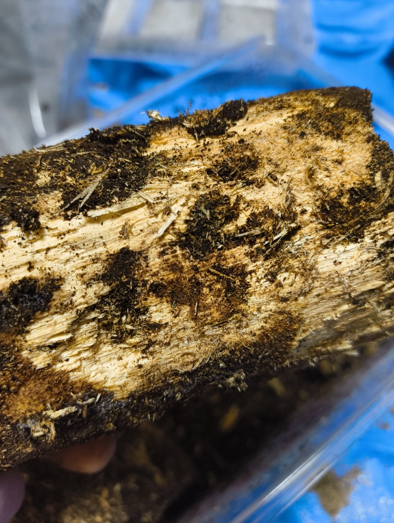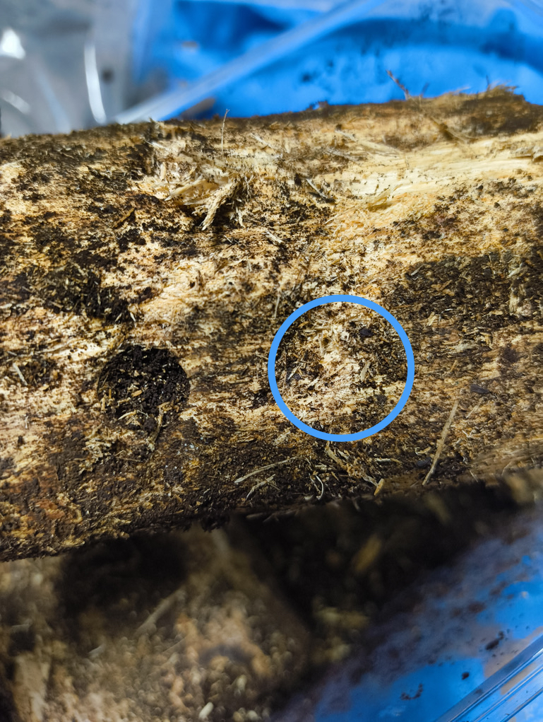 卵が産み付けられた材は、こんな感じにボロボロになります↓↓↓