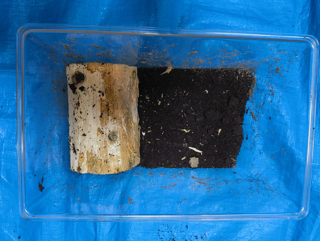 自作バクテリア材(インターメディアツヤクワガタの幼虫のフンの中に一定期間材を埋めて作成)
