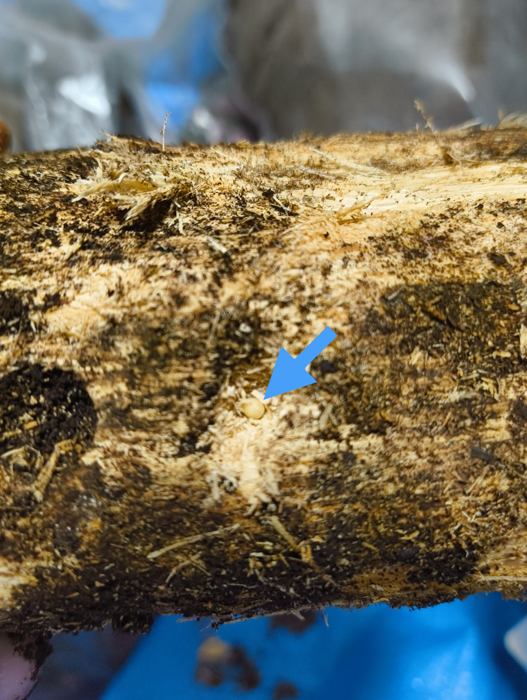 しかし、先程お見せした材に関しても後日、3本中2本にはしっかりと産卵されていましたのでご安心ください。