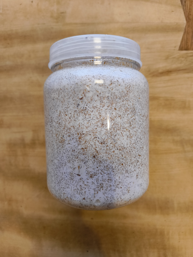 ボトルの口付近まで菌糸をガチガチに押し固めました。